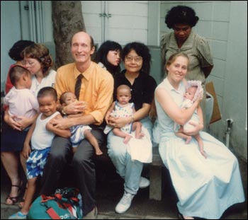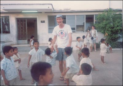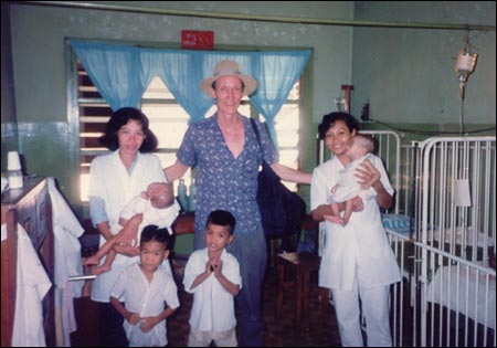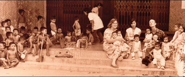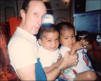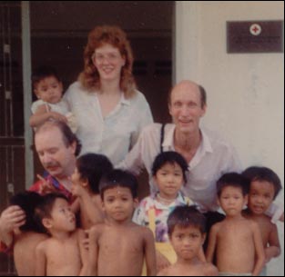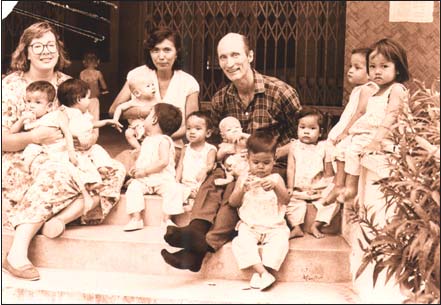 The first 10 orphans to leave Cambodia in 1990 heading for the
