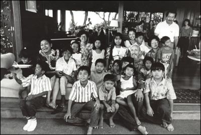 HONOLULU, HAWAII, ABOUT 1993... A SPECIAL VISIT BY KHUN SUMITMAI DHARMASAROJ (HE NAME MEANS “Good New Friend Lotus of the Dharma) OF BANGKOK WHO BEFRIENDED AND HELPED MANY OF THE FAMILIES WHO ADOPTED ORPHANS FROM THAILAND AND CAMBODIA THROUGH “WORLD FAMILY”.