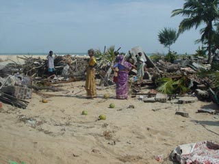 Click to enlarge Picture Houses destroyed by the tsunami,. Batticaloa, Sri Lanka (on the East Coast where aid is not reaching the primarily Tamil population) |